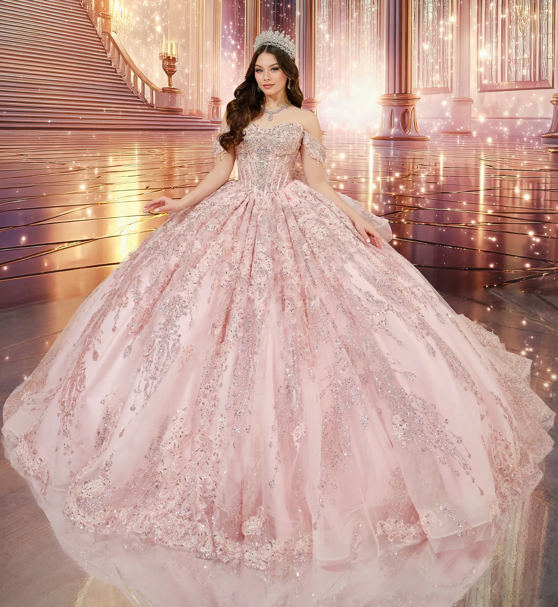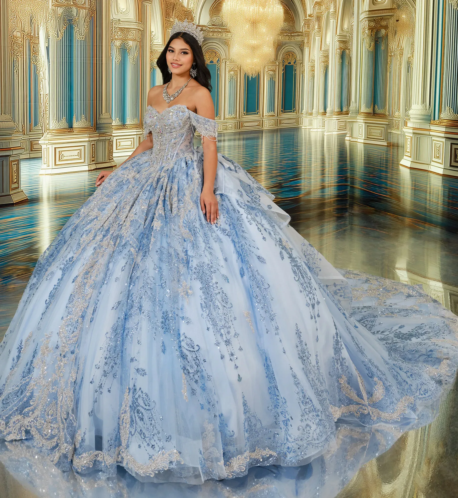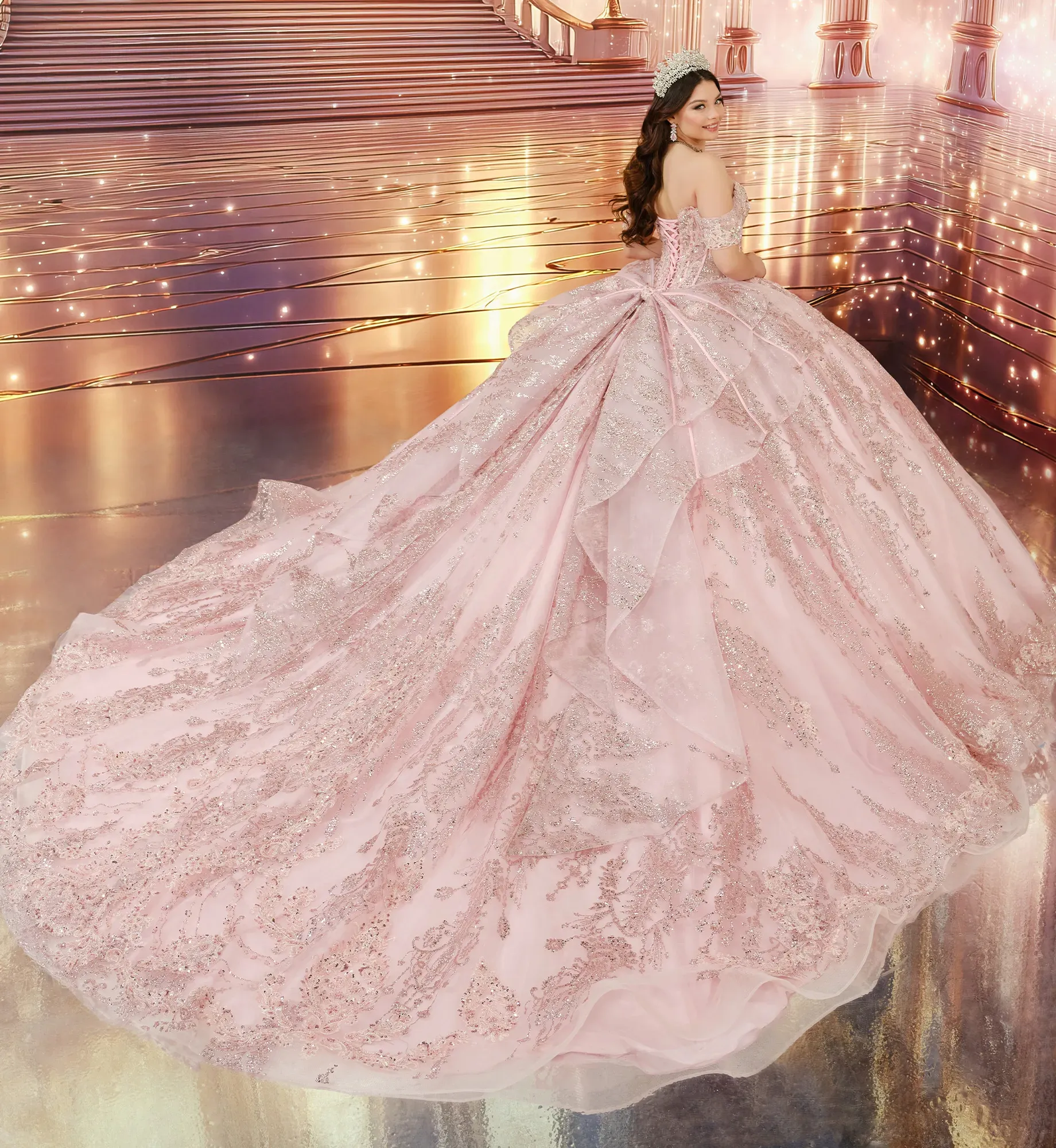 Boned Bodice Quinceañera Gown w/ Extra-Long Train